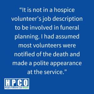 It is not in a hospice volunteer’s job description to be involved in funeral planning. I had assumed most volunteers were notified of the death and made a polite appearance at the service. Max was my first palliative hospice client and not much about my relationship with him had gone as anticipated. I think I expected my clients to be elderly ladies with cats, weathered teapots and photos of their grandchildren. I learned, however, that life threatening illnesses don’t wait until adoring offspring are prepared to carry on your name.